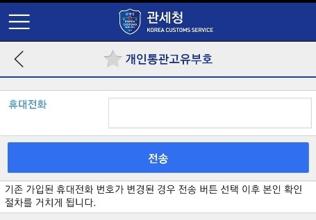 2. 관세청 모바일앱에 접속 후, 화면에 보이는 개인통관고유부호를 클릭!