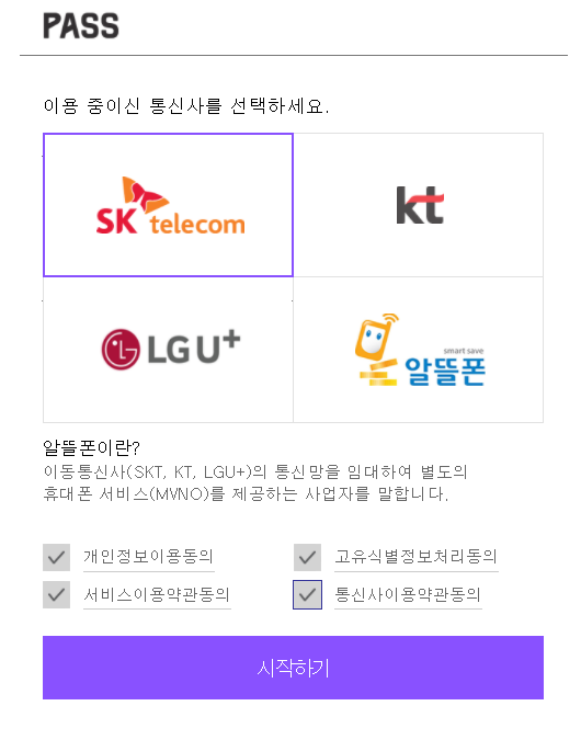 4. 통신사 선택 후, QR인증, 간편인증, 문자인증 중 편하신 방법으로 인증해주세요!