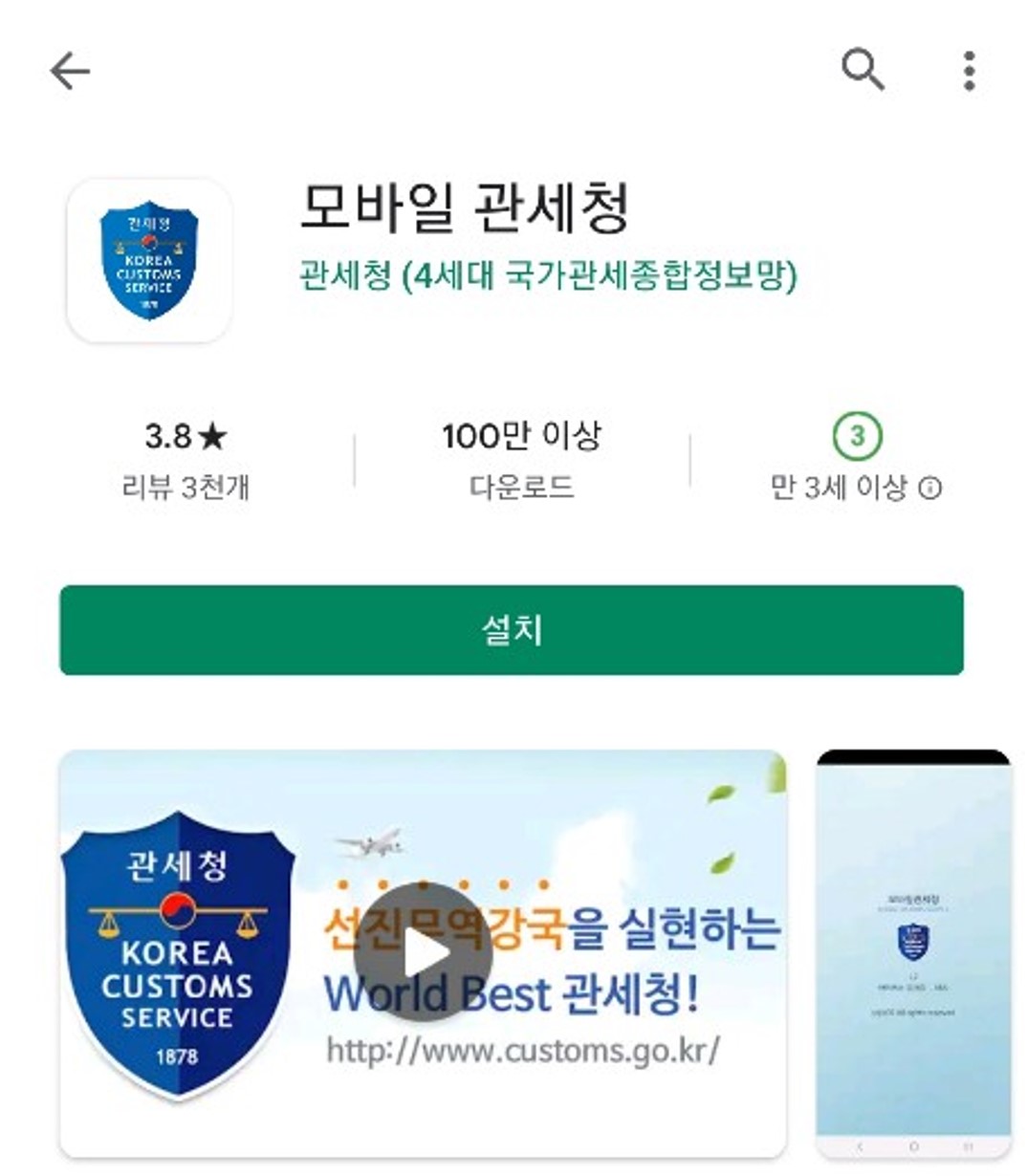 1. 앱스토어(플레이스토어)에서 관세청 모바일앱을 검색, 설치해주세요!
